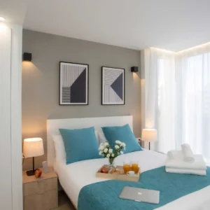 Todas las viviendas cuentan con acabados de alta calidad, cocinas completamente equipadas, mobiliario moderno y detalles que marcan la diferencia, como grandes ventanales, techos altos y espacios abiertos que favorecen la luz natural. Algunos apartamentos disponen de terrazas privadas con vistas al barrio, ideales para desconectar sin salir de casa.