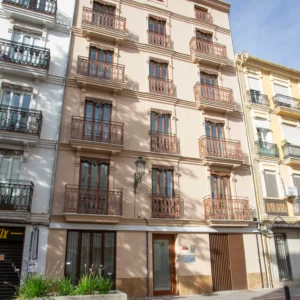 Situado en una zona residencial tranquila y bien comunicada de Valencia, el edificio Compromiso de Caspe alberga cinco amplios apartamentos de 2 habitaciones (cada uno incluyendo un estudio con un sofá cama individual), distribuidos a razón de una vivienda por planta, lo que garantiza privacidad, luminosidad y mayor tranquilidad para sus residentes.
