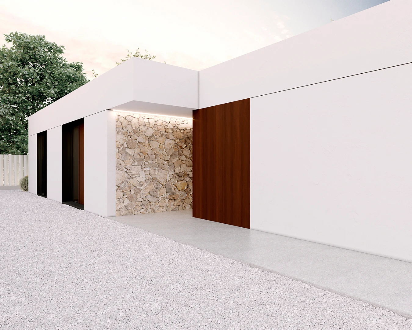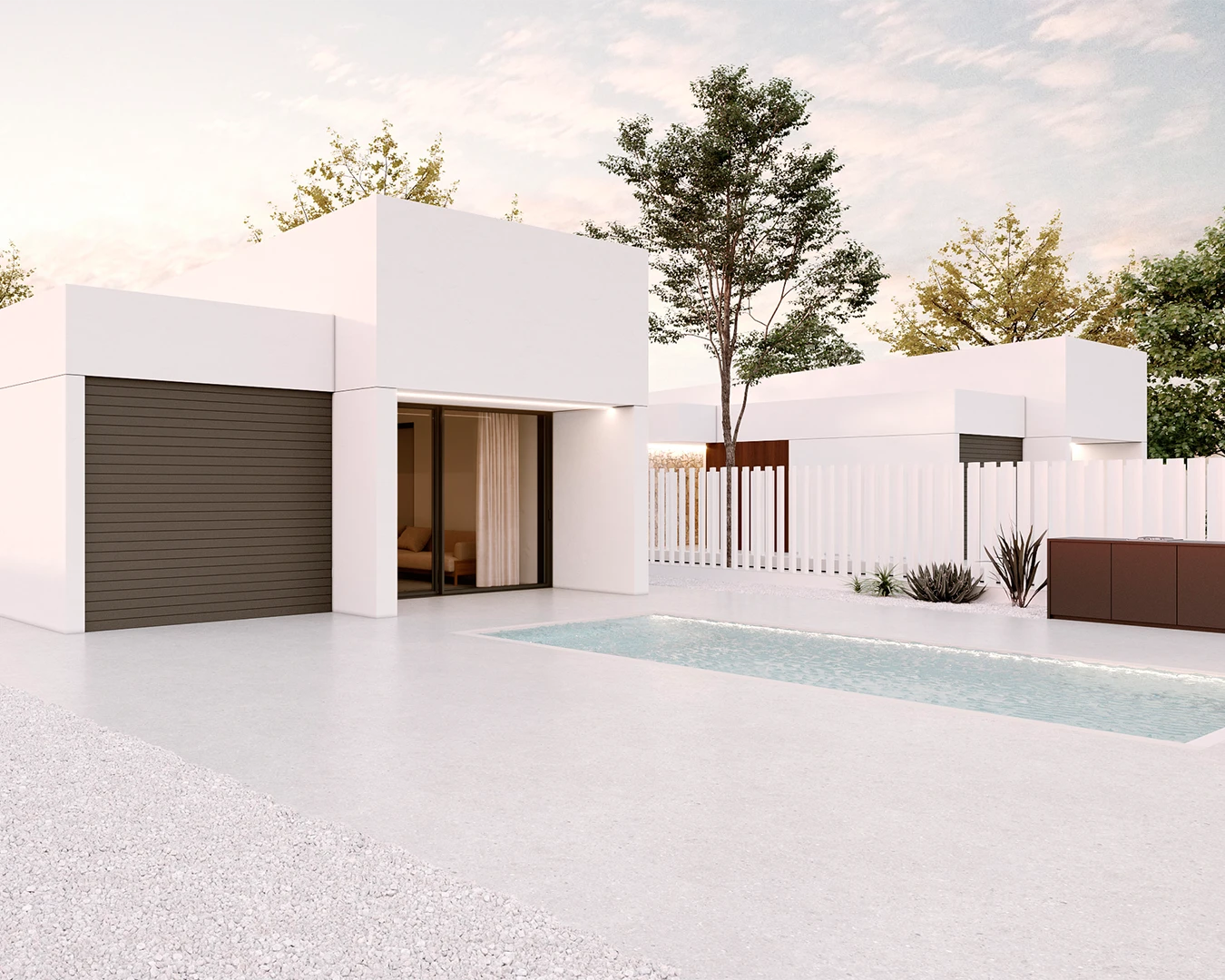 Nuestra última promoción inmobiliaria sostenible y modular en Bétera Montesano presenta un conjunto de siete viviendas unifamiliares diseñadas en una sola planta. Cada vivienda ha sido concebida con tres habitaciones y dos cuartos de baño, incorporando también lavadero y tendedero exterior. Además, cada hogar cuenta con su propio espacio de estacionamiento, una zona de barbacoa para disfrutar al aire libre y una piscina para complementar el estilo de vida moderno y sostenible que ofrecemos.